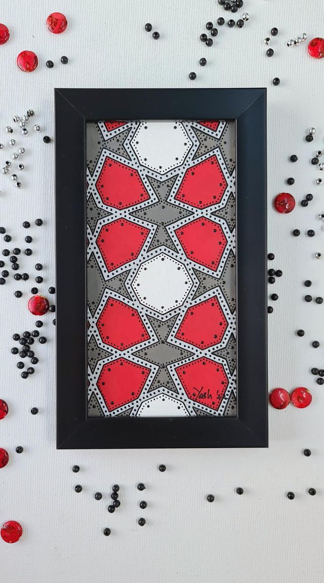 Art is done on wood and framed in black. With the frame it measures roughly 22cmX13cm