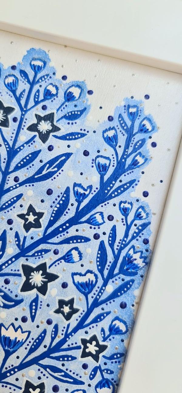 This beautiful blue and white tree was inspired by a picture I saw on Pinterest. I wanted it to be a magical tree like in Avatar movies... and I wanted it in blue as that is my mother`s favourite colour and she is my magic tree.