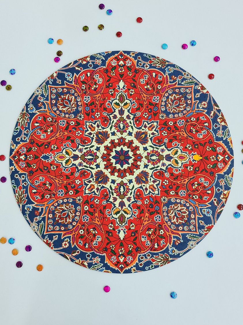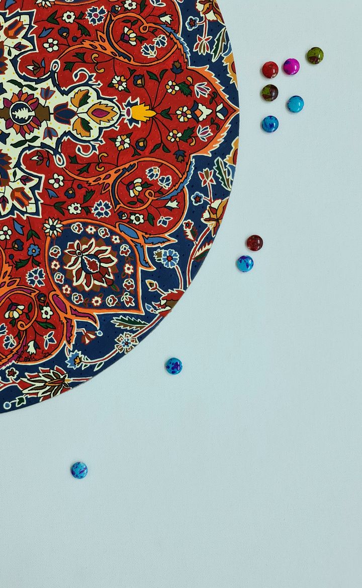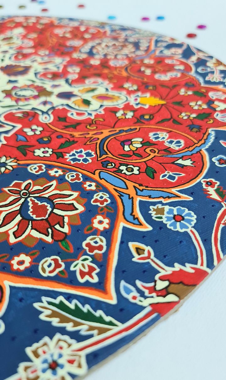 This the middle medallion of a Kashan rug (Persian) circa 1920, done on 100% cotton acid free canvas on 3mm sturdy board.